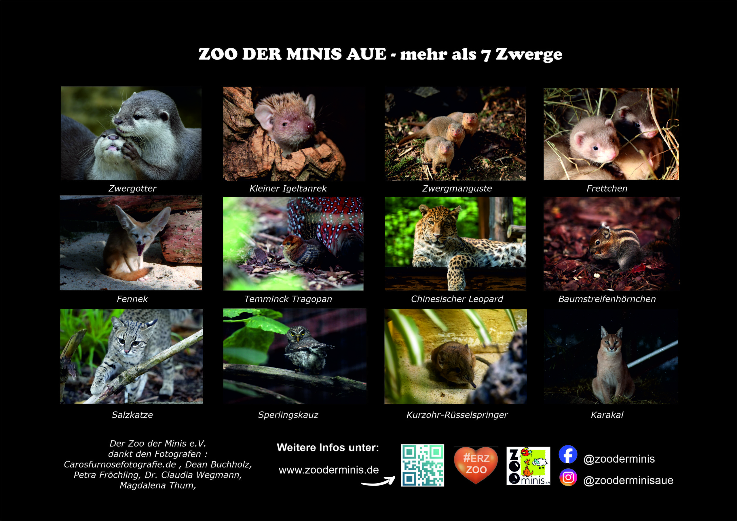 Feiner hochwertiger Monatskalender mit außergewöhnlichen Bildern von Tieren des Zoo der Minis in Aue.